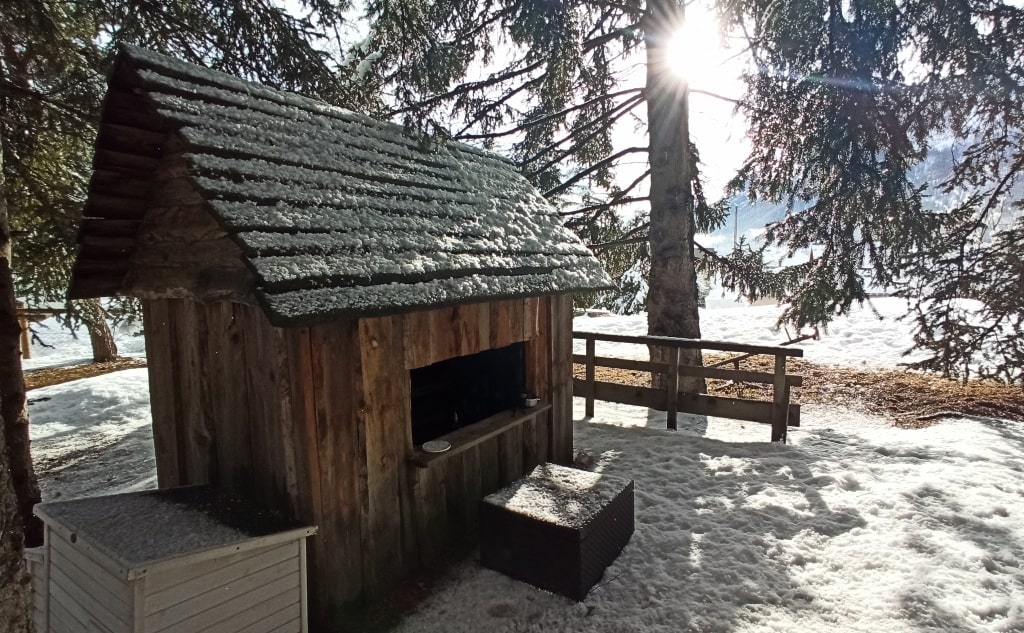 Le chalet dispose d’un ski room/local à vélo, de sèches-chaussures de ski, de luges, d’une cabane en bois, de balançoires,